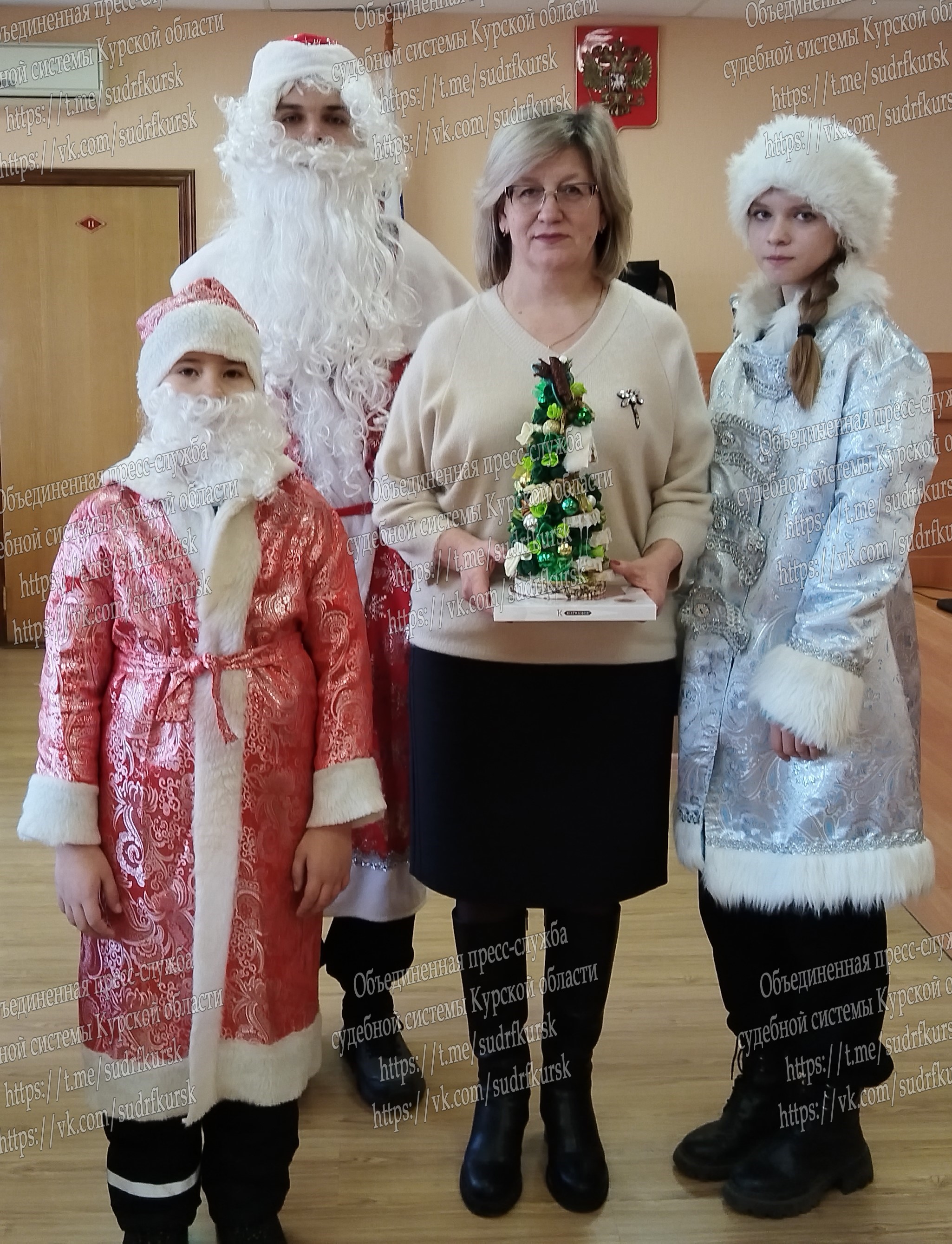 ![]() ![]() Статный Дед Мороз и красивая Снегурочка с совсем еще юным Новым Годом в лице учащихся «МКОУ Золотухинская основная общеобразовательная школа Золотухинского района Курской области» поздравили председателя и коллектив Золотухинского районного суда с наступающим новым 2026 годом и пожелали успехов в работе, исполнения желаний и дальнейшего плодотворного взаимного сотрудничества, подарив на память, сделанную своими руками ёлку – символ новогоднего праздника. Председатель суда пожелала ребятам встретить Новый год с хорошим настроением, отлично провести каникулы и с новыми силами приступить к учебе, добиться новых вершин, новых побед и новых знаний. |