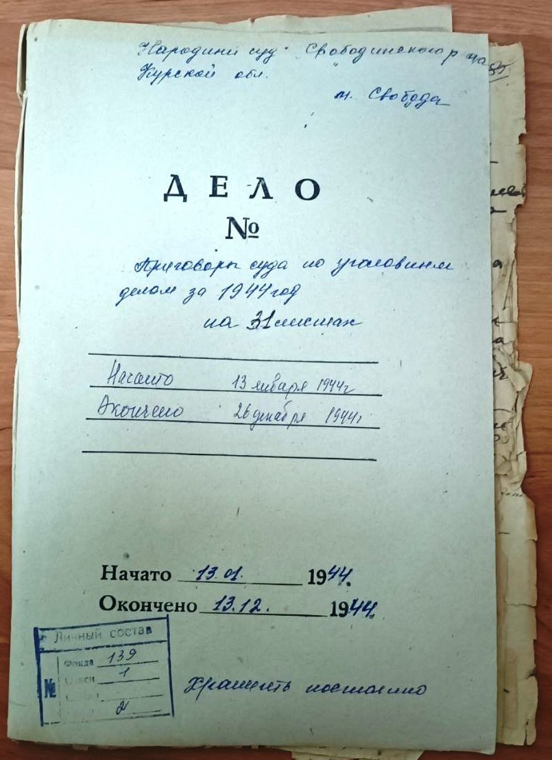 Сегодня расскажем о приговоре, оглашенном в мае 1943 года в Свободинском районе Курской области (материалы хранятся в Золотухинском районном суде).